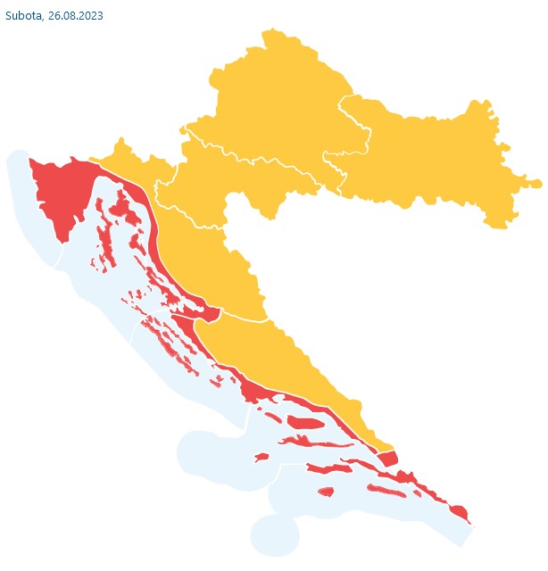 Toplinski val će zahvatiti cijelu Hrvatsku pa će sva područja biti u u narančastom ili crvenom meteoalarmu, odnosno u zoni velike opasnosti. Zbog toga se treba kloniti najvrelijih dijelova dana, piti dosta tekućine i slijediti naputke za zaštitu od vrućine te prilagoditi svoje ponašanje, a to se posebno odnosi na najranjivije skupine- trudnice, srčane bolesnike i osobe starije životne dobi.
